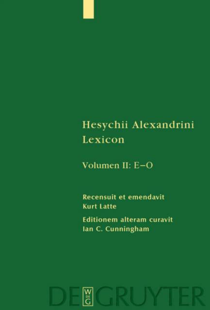 Hesychius' 5th(?)-century Greek lexicon is a very important survivor of ancient learning, including fragments of Greek literature and offering material, not yet fully evaluated, on patristic writings. The final critical edition was begun by Kurt Latte (Vol. 1, 1953 and Vol. 2, 1966, Copenhagen: Munksgaard; now out of print) and continued by Hansen and Cunningham (SGLG 11/3 and 11/4, 2005 and 2010). A revised edition of the first Latte volume by Cunningham (SGLG 11/1, 2017) followed and is now completed by the revised edition of vol. 2, which also provides a more complete record of the readings of the unique manuscript, cites parallels from related works in the current editions, and takes account of the scholarship of the intervening years. A volume of indexes and addenda is planned (to be SGLG 11/5).