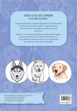 L’imposant lévrier, le tout petit chihuahua ou le dynamique Jack Russel réclamant sa balle : 50 races de chiens sont à découvrir et à réaliser au fil des pas-à-pas de ce livre. Muni de vos crayons, reproduisez simplement les étapes, suivez les dessins et les conseils pour donner vie à de nombreux chiens au repos ou en mouvement, ainsi qu’à des chiots pleins d’énergie !