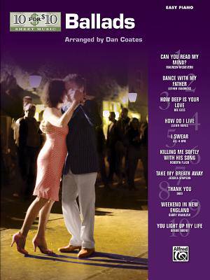 10 for 10 Sheet Music: Ballads contains the most beautiful melodies from the pop charts over the years. Titles: Can You Read My Mind * Dance with My Father * How Deep Is Your Love * How Do I Live * I Swear * Killing Me Softly With His Song * Take My Breath Away * Thank You * Weekend in New England * You Light Up My Life.
