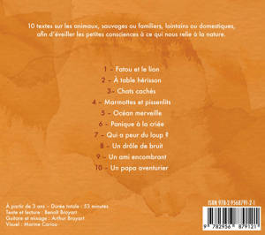 Ces petites capsules d'environ 5 minutes sont des histoires destinées aux enfants à partir de 3 ans. Idéalement, elles sont à écouter chez soi, en voiture, en train... ou en bateau à voile. Elles sont aussi à partager. Et c'est encore mieux. En famille par exemple. Asseyez-vous et laissez-vous emporter. Des textes sur les animaux, sauvages ou familiers, lointains ou domestiques... afin d'éveiller les petites consciences à ce qui nous relie à la nature. Ces histoires constituent en effet un premier éveil à l'écologie. Regarder autour de soi ce qui vit, que l'animal soit grand ou petit. Du chat au loup, de l'ours polaire au manchot, du lion à la marmotte, du chat au poisson-clown. L'ensemble des textes est rehaussé de touches musicales. Générique bien sûr mais aussi respirations dans la narration. La guitare d'Arthur Broyart habille avec élégance chacune de ces capsules. Grâce à son trait tout en rondeur, Marine Cariou a créé un visuel parfait pour apporter à ses 10 histoires d'animaux la douceur qui leur était nécessaire. La démarche entreprise s'affirme en circuit court. Une volonté de gommer les intermédiaires pour privilégier un lien direct entre ceux qui créent et ceux qui écoutent.