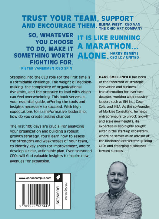 'Trust your team, support and encourage them.' - Elena West, CEO van The Ohio Art Company 'So, whatever you choose to do, make it something worth fighting for.' - Pieter Vanermen, CEO Spin 'It is like running a marathon… alone.' - Harry Demey, CEO LDV United