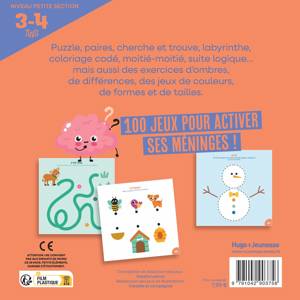 Puzzle, paires, cherche et trouve, labyrinthe, coloriage codé, moitié-moitié, suite logique… mais aussi des exercices d’ombres, de différences, des jeux de couleurs, de formes et de tailles.