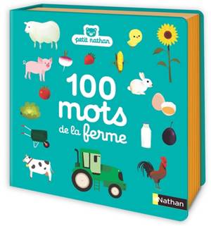 100 mots de la ferme regroupés par milieu : animaux, lieux (basse-cour, étable, pré), aliments, objets et outils, fruits et légumes...
