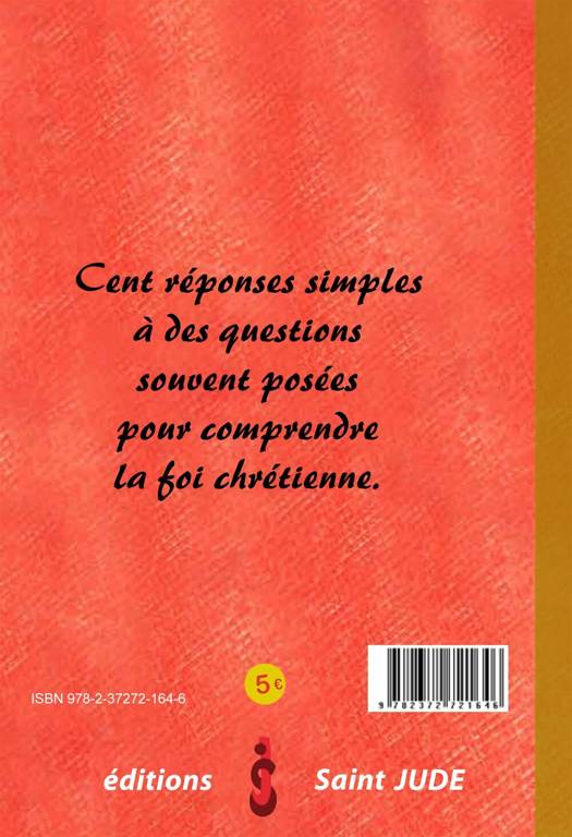 Pourquoi croire en Dieu ? l'Enfer existe-t-il ? Qu'est-ce qu'un ange ? L'homme est-il mauvais ? Pourquoi ne pas vivre de ses passions ? Qu'est-ce que le péché ? Qu'est-ce que les dix commandements ? Dieu a-t-il créé le monde en 7 jours ? Pourquoi se reposer le dimanche ? Pourquoi Jésus est-il mort ? Qu'est-ce que la Trinité ? Dieu se soucie-t-il de nous ? ... Cent réponses simples pour comprendre la foi des chrétiens.