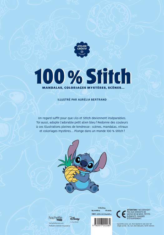 Un regard suffit pour que Lilo et Stitch deviennent inséparables. Toi aussi, adopte l’adorable petit alien bleu ! Redonne des couleurs à ces illustrations pleines de tendresse : scènes, mandalas, vitraux et coloriages mystères… Plonge dans un monde 100 % Stitch !
