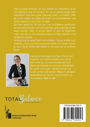 Help jij graag anderen om hun doelen te ontdekken of tot hun bestemming te komen? En wil je daarbij graag God betrekken? Dan ben jij een Bijbelse coach: je luistert, stelt de juiste vragen en helpt de ander om te ontdekken wat Gods roeping is voor hem of haar. Dit boek geeft jou 101 tips om met je Bijbelse coachwerk aan de gang te gaan. Je kunt het boek gebruiken als je een eigen praktijk hebt of erover denkt er een te beginnen, maar ook als je niet beroepsmatig/vrijwillig mensen in je omgeving coacht. Ontdek hoe je jezelf blijft ontwikkelen, hoe je liefde kunt uitdelen, maar ook hoe je grenzen stelt. En vooral: hoe je je door Gods liefde laat leiden in de hulp die jij anderen biedt.