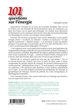Aujourd'hui, l'énergie est au coeur de l'actualité mondiale. Que ce soiten France, lors du Grenelle de l'environnement, dans les entreprises oudans nos foyers, on ne parle que d'énergie. Les médias nous abreuventd'informations sur le sujet pour nous inciter à faire des économies d'énergieet à développer le recours aux énergies renouvelables.Pourtant, les solutions proposées font encore débat pour savoir quelleénergie choisir : nucléaire ou éolienne ? Solaire ou biomasse ? Et quesignifi e l'expression « charbon propre » ? Et pourquoi le prix du pétrolegrimpe-t-il au point que l'on proclame qu'il n'y en aura bientôt plus ? Et sic'est le cas pourquoi donc dégringole-t-il ensuite ?« Car l'urgence est là » nous répètent les médias à cause, principalement, del'augmentation des gaz à effet de serre qui menacent le système climatique etd'une économie mondiale dépendante de régions politiquement instablesmais riches en pétrole et en gaz... comme le Moyen Orient, l'Afrique ou leCaucase. Que fait l'Europe dans tout cela ? Et tout ce gaz en Russie !Diffi cile de s'y retrouver quand on n'est pas des spécialistes ! Tel estle constat dressé par l'auteur qui a pris le parti de nous aider à mieuxcomprendre les grands enjeux de l'énergie. En prenant volontairement lecontre-pied du « politiquement correct », il nous propose avec pédagogieses réponses à 101 questions-clés destinées à nous éclairer entièrementsur le sujet : la sécurité d'approvisionnement énergétique de l'Europe, lagéopolitique de l'énergie, l'avenir du pétrole, les crises énergétiques, ledéveloppement durable...À lire Samuele Furfari, vous saurez enfi n tout sur l'énergie qui touche àtous les aspects de notre vie.
