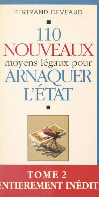 Impôts, argent au noir, assurances, transports, PTT, contraventions, retrait de permis, logements, EDF, conseils et astuces, etc. : aimeriez-vous recevoir les meilleurs avis sur ces sujets ? Le premier tome de « 110 moyens légaux pour arnaquer l'État » fut un grand best-seller de l'année 1992 : plus de cent dix mille exemplaires vendus. Bertrand Deveaud, à la suite de ce livre, a reçu un énorme courrier, et s'est aperçu que les demandes de ses lecteurs étaient très variées, ce qui lui donna de nouvelles idées, des pistes inédites à explorer. Après une longue enquête, voici le résultat de ses recherches, un tome deux, entièrement inédit, avec d'autres moyens, aussi efficaces et imparables que ceux qui ont fait le succès du premier ouvrage. Le principe n'a pas changé : désirez-vous engraisser l'État à vos propres frais ? Si oui, n'achetez pas ce livre. Dans le cas où vous désireriez lutter contre l'administration prédatrice, procurez-vous les armes qui terrasseront légalement l'État.