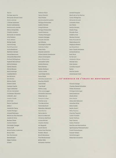 Explorant depuis vingt ans la création artistique contemporaine utilisant les images animées, la Biennale propose notamment pour sa 11e édition des rétrospectives de Michel Auder, Stan Brakhage et Raul Ruiz, un regard sur des artistes du cône sud-américain (Rodrigo Alonso, Jorge La Ferla et Nestor Olhagaray) et une sélection d'oeuvres d'E. Antille, M. Barney, P. Couliboeuf, H. Farocki...