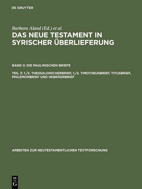 Der Band bietet eine Edition sämtlicher syrischer Übersetzungen des Neuen Testaments in synoptischer und chronologischer Darbietung. Die Übersetzungen werden erstmals kritisch ediert. Das Zitatmaterial, das verlorene Übersetzungen (Vetus Syra, Philoxeniana) widerspiegelt, wird zusammengestellt. Die Einleitung bietet ausführliche Erörterungen aller Überlieferungskomplexe. Eine Rekonstruktion der griechischen Vorlage der Harklensis mit Vollkollationen der verwandten griechischen Handschriften und zahlreiche Indizes erschließen das Werk auch für Nichtspezialisten.