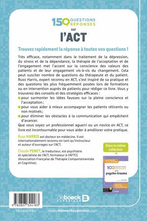 Russ Harris, expert reconnu en ACT, s'est inspiré de sa pratique et des questions les plus fréquentes qu'il a rencontrées lors de séances de formation ou en intervention auprès de patients pour écrire cet ouvrage. Vous y trouverez des conseils et des stratégies efficaces.