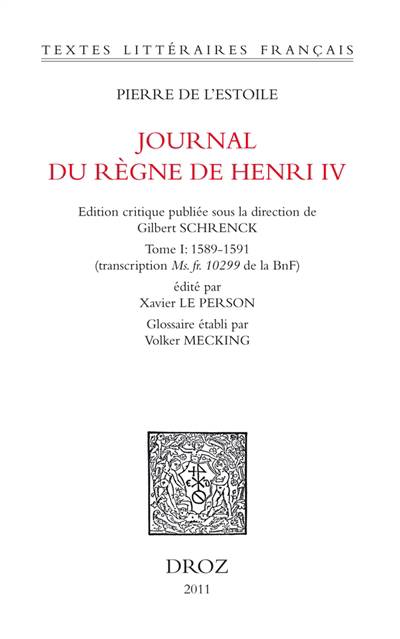 Etablie d'après les manuscrits originaux, cette édition bénéficie de la démarche interdisciplinaire de spécialistes en histoire, en littérature et en lexicographie. Ce premier volume débute par les conséquences de l'assassinat de Henri III et les circonstances du siège militaire de Paris, jusqu'à sa reprise en main par le duc de Mayenne.
