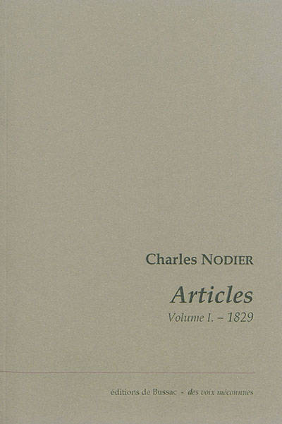 Le volume comprend la publication intégrale de toutes les préfaces et les articles de Charles Nodier parus dans différentes revues en 1829. Accompagné d'un Répertoire chronologique de ses écrits. Edition préparée par François Teilh.