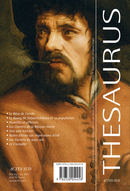 Actes Sud poursuit la réédition en Thesaurus de l'oeuvre de Dostoïevski, magistralement traduite (et commentée) par André Markowicz. Au sommaire de ce nouveau volume, les oeuvres qui ont marqué le retour de Dostoïevski à la vie littéraire, après dix ans de bagne et de relégation : «Le Rêve de l'oncle», «Le Bourg de Stépantchikovo et sa population», «Humiliés et Offensés», «Les Carnets de la maison morte», «Une sale histoire», «Notes d'hiver sur impressions d'été», «Les Carnets du sous-sol» et «Le Crocodile».