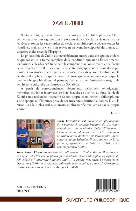 Xavier Zubiri a été l'un des penseurs les plus vigoureux et importants du XXe siècle. Ni sa vie ni son oeuvre ne peuvent être séparées du drame, du caractère et des rêves de l'Espagne. La philosophie de Zubiri est inévitablement ancrée dans son époque et dans ce qui constitue la trame complexe de la condition humaine : les sentiments, les passions et les désirs. Les auteurs se sont focalisés sur la vie du philosophe et ce qui l'entoure.