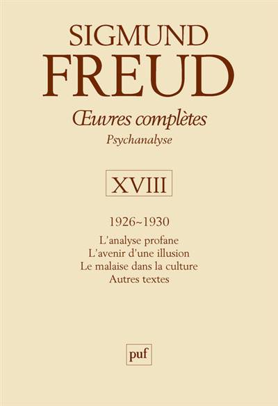 Les textes concernant la psychanalyse écrits par Sigmund Freud entre 1926 et 1930, en particulier les célèbres Le malaise dans la culture et L’avenir d’une illusion, dans la traduction des Œuvres complètes initiée sous la direction de Jean Laplanche.