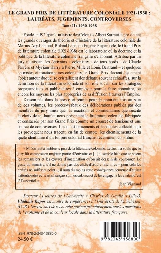 Livre broché | Français | Le Grand prix de littérature coloniale, 1921-1938 | n° 2