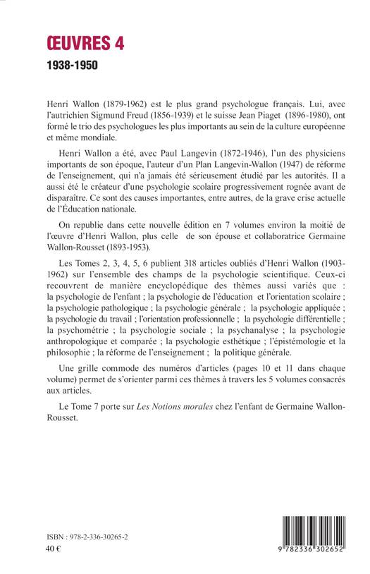 Henri Wallon (1879-1962) est le plus grand psychologue français et forme, avec Sigmund Freud et Jean Piaget, le trio des psychologues les plus importants au sein de la culture européenne et mondiale. Cette nouvelle édition en 7 volumes comprend environ la moitié de son oeuvre ainsi que celle de son épouse et collaboratrice Germaine Wallon-Rousset (1893-1953). Les tomes 2, 3, 4, 5 et 6 publient 318 articles oubliés d'Henri Wallon sur l'ensemble des champs de la psychologie scientifique.