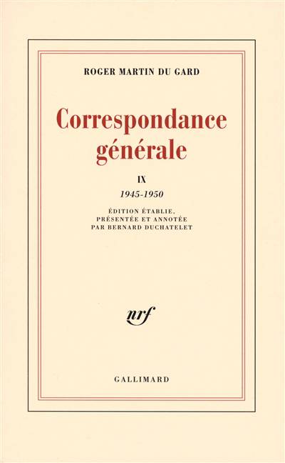 La guerre se termine. Roger Martin du Gard quitte Figeac pour regagner Nice, peu désireux de revenir à Paris et de regagner le Tertre ; il attend que les passions s'apaisent. Il s'y décide enfin. Attentif aux mouvements de pensée et au renouveau qui s'annonce, inquiet de voir l'état révolutionnaire de la France, il résiste aux pressions, redoute les conflits qui se préparent et refuse de "se jeter dans la mêlée". Il prend vite conscience qu'il est désormais un homme du passé. Il "reste d'un temps sceptique, et se défiant de toutes les certitudes". Il refuse l'"esprit partisan" et rejette la "littérature engagée" que prône désormais Sartre. Malgré les difficultés, il veut garder sa liberté et rester fidèle à soi-même. Lucide, il est l'homme d'entre les deux guerres, ""spectateur passif", mais spectateur". "Dépassé par l'Histoire, je me survis", reconnaît-il. "Entre un présent hostile et dénudé, et le passé qui m'offrait son refuge, j'ai lâchement opté pour le passé, et accepté d'être un "anachronisme"." Il accepte ses limites. Sachant qu'il ne peut parler à la génération nouvelle, il reprend son travail et réfléchit à l'oeuvre posthume commencée durant la guerre. Il est soucieux d'"achever harmonieusement sa courbe". En novembre 1949, il perd brutalement sa femme. Une page se tourne. Malgré le travail qui le délivre de sa souffrance, en 1950 il se sent peu à peu démoralisé ; aux ennuis de santé s'ajoutent les nouvelles du monde : Roger Martin du Gard est persuadé de l'imminence d'une conflagration. Le ton de ses lettres se colore parfois de cette angoisse de l'avenir.