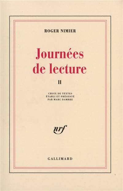 "Les écrivains que nous venons de découvrir nous paraissent adolescents, à plus forte raison vivants." Sous l'invocation de Marcel Proust, le critique de Journées de lecture nous rend présents Stendhal, Cioran ou Céline ("Un classique, un ! ... la littérature française est servie"), comme si le lecteur était toujours l'acteur, sinon l'auteur, du livre qu'il tient entre les mains. Ainsi ces "journées" des années cinquante rejoignent les nôtres. D'autres phrases, elles, mettent en garde : "Dans une mode littéraire, il y a surtout un grand nombre de personnes qui détestent la littérature." Les livres qui importent n'ont pas d'âge. Un tel acte de foi ne vaut que par l'extrême liberté. Roger Nimier n'étant pas de ceux qui chérissent la convention, la littérature est déclarée ville ouverte. "Il n'y a pas de dignité des genres, écrit-il encore. La littérature est une substance maligne qui se glisse partout, sans prévenir, et s'en va comme elle veut." Elle est ici dans l'humour, les fléchettes, la haine de l'ennui. Elle est dans le jugement mesuré comme dans le paradoxe. Nimier peut récrire La Princesse de Clèves avec la plume de Peter Cheyney et Simenon avec celle de Simenon, rêver quelques pages sur la première phrase d'un roman, prolonger via Maupassant la compagnie amicale de Paul Morand, jauger de Gaulle, Pierre Benoit ou Maurice Blanchot. Si certains des cinquante écrivains rassemblés provoquent plus la dispute que l'admiration ou la complicité, ils sont encore de la famille.
