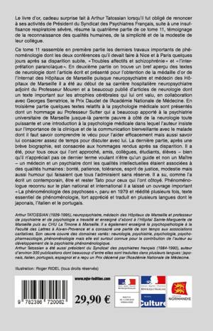 Ceci est le dernier tome des oeuvres complètes du grand psychiatre phénoménologue, Arthur Tatossian. On apprend beaucoup sur l'histoire de la psychiatrie française et internationale. Les inédits, les documents d'archive et les témoignages du Livre d'Or révèlent beaucoup d'informations intéressantes dans le monde de la phénoménologie, de la psychanalyse et de la psychiatrie.