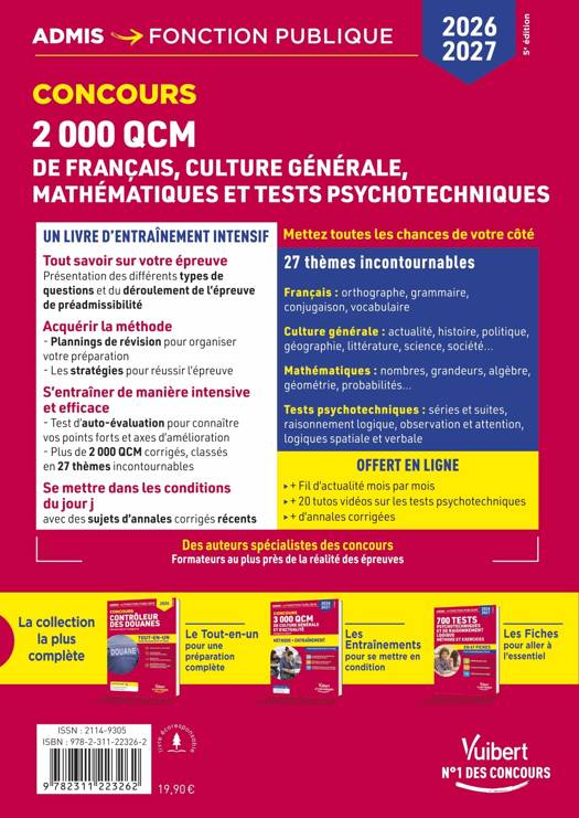 Un livre d'entraînement intensif pour préparer les épreuves de préadmissibilité et de QCM des concours de catégories C et B et faire la différence le jour J.