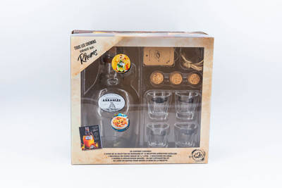 Flibustiers assoiffés et mordus de l'apéritif, retrouvez le nouveau coffret Tous les chemins mènent aux rhums qui navigue entre 25 recettes autour du rhum à réaliser dans une bouteille en verre gravée de 1,1 litre et 10 nouvelles recettes de saveurs créoles pour prolonger le plaisir : accras, samoussas, brochettes de crevettes au colombo, féroce d'avocats... Pour compléter ce set, 4 verres gravés assortis, 4 bouchons en liège et un jeu d'étiquettes et de liens en raphia pour noter le nom de la recette ! Préparez, patientez et évadez-vous le temps d'une soirée....