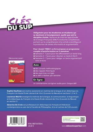 Obligatoire pour les étudiantes et étudiants qui se destinent à l’enseignement, quelle que soit la discipline choisie, l’épreuve de maitrise approfondie de la langue française (EMLF) évalue les compétences portant sur la compréhension d’un article scientifique et la production de textes informatifs et argumentatifs.