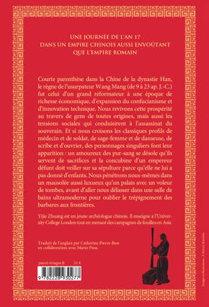 Après «24 Heures dans l'Égypte ancienne», de Donald P. Ryan (2019) et «24 Heures dans l'antique Athènes», de Philip Matyszak (2021), voici de nouveau 24 chapitres et un personnage par chapitre, cette fois pour raconter chacune des 24 heures d'une journée dans la Chine des Han, en 17 après J.-C., sous le règne de l'usurpateur Wang Mang, confucianiste et réformateur. Car nous autres Occidentaux ignorons presque tout du quotidien des Chinois de jadis hors des palais impériaux. Le jeune archéologue Yijie Zhuang nous le raconte de manière particulièrement vivante, sur fond de tensions sociales et à une époque d'époustouflant progrès techniques (dont l'invention du papier, de la racine carrée et... de la brouette).