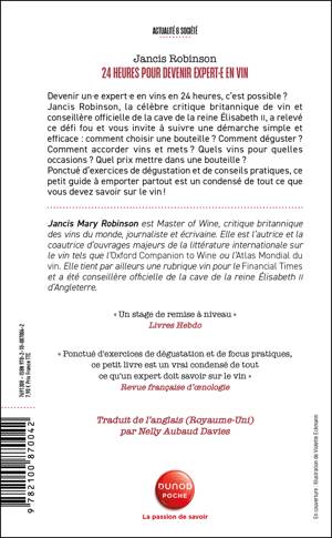 Devenir un expert en vin en 24 heures, c’est possible ? Jancis Robinson, la célèbre critique britannique de vins et anienne conseillère officielle de la cave de la reine Élisabeth II, a relevé ce défi fou et vous invite à suivre une démarche simple et efficace : Comment choisir une bouteille ? Comment déguster ? Comment accorder vins et mets ? Quels vins pour quelles occasions ? Quel prix mettre dans une bouteille ? Ponctué d’exercices de dégustation et de conseils pratiques, ce petit guide à emporter partout est un condensé de tout ce que vous devez savoir sur le vin !