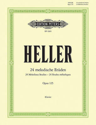 24 Melodious Studies Op.125 by Stephen Heller, edited by Robert Teichmüller. Heller took a great deal of trouble in adding suitable marks of expression and supplying the necessary phrasing and slurs. This edition has been entirely based upon the original version which the composer himself revised.