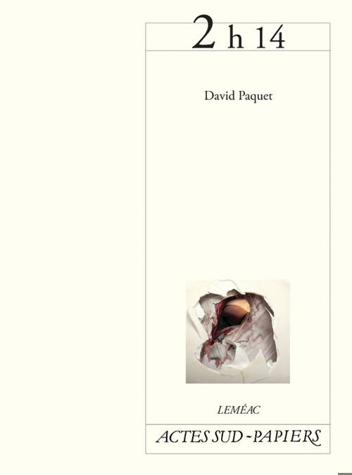 «Diplômé du programme d'écriture dramatique de l'École nationale de théâtre du Canada en 2006, David Paquet a depuis vu sa pièce »Po rc-épic«, éditée chez Dramaturges Éditeurs, et présentée à Montréal, en Allemagne, au Mexique, en Autriche, en Belgique et en France dans le cadre des cycles de lectures de la Comédie-Française. Il a participé en juillet 2008 au Séminaire international d'auteurs é mergents de la Sala Beckett à Barcelone. L'année suivante, son texte »Le Brasier« était présentée dans le cadre du festival Jamais Lu de Montréal. Gagnant de la sixième édition du concours Le théâtre jeune public et la relève, David Paquet a vu sa pièce pour adolescents »2h14« sur les planches de la Maison-Théâtre de Montréal en janvier 2010. Lauréat, pour sa pièce »Porc-épic«, des prestigieux prix littéraires du Gouverneur Général du Canada en théâtre francophone (2010) et du prix Michel Tremblay (2010), il a aussi collaboré avec plusieurs compagnies de théâtre en tant que traducteur, dramaturge, parrain d'écriture, conférencier ou membre de jury.»