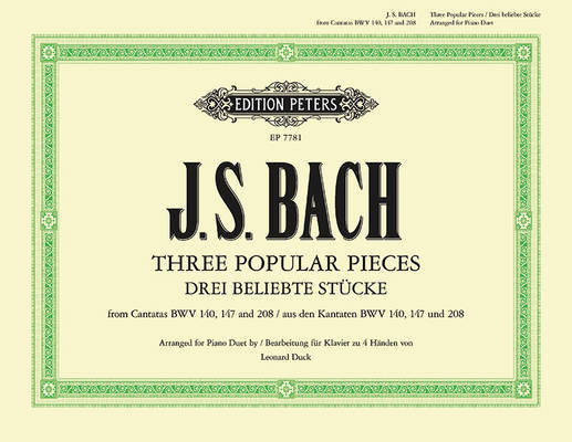 Arrangements for piano duet by Leonard Duck of 3 of Bach's most famous pieces from his Cantatas: Jesu, Joy of Man's Desiring; Sheep May Safely Graze; Sleepers, Wake. Landscape performance to facilitate performance.