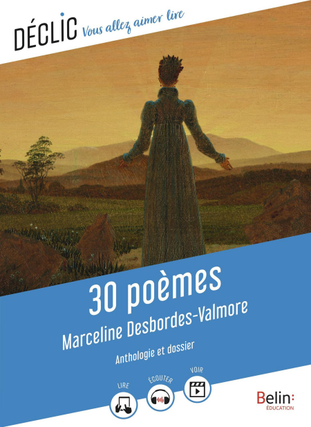 « Les Séparés », « Les Roses de Saadi », « Une lettre de femme »... Découvrez, à travers cette anthologie de trente poèmes, les thèmes chers à Marceline Desbordes-Valmore comme la nostalgie, l’amitié, l’enfance, la nature ou l’engagement. Un regard renouvelé sur le monde par une poétesse considérée comme l’égale d’Alphonse de Lamartine ou de Charles Baudelaire. Une œuvre tombée dans l’oubli, puis redécouverte, d’une grande modernité ! Les points forts de l'édition « Déclic » : LIRE Le texte enrichi de nombreuses images dans une mise en page vivante et aérée COMPRENDRE Des questionnaires et des activités ludiques pour s’approprier le texte RETENIR Un dossier complet et accessible pour retenir l’essentiel PROLONGER Un groupement de textes et des conseils pour compléter la lecture + ACCOMPAGNER De nombreux compléments numériques pour aider les élèves dans la lecture (le texte lu par un comédien, des extraits vidéo à visionner sur Internet, des versions epub de l’ouvrage et du texte accessible aux élèves DYS disponibles dans les librairies numériques).