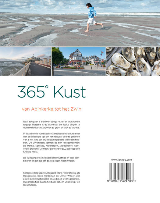De ultieme Kustbijbel voor al wie graag zon, zee, zout en alle zaligheden proeft Naar zee gaan is altijd een beetje reizen en thuiskomen tegelijk. Nergens is de diversiteit om leuke dingen te doen en lekkers te proeven zo groot en toch zo dichtbij. In deze unieke kustbijbel verzamelden de auteurs meer dan 365 heerlijke tips om het hele jaar door te genieten van al het fijne dat onze kust en polders te bieden hebben. De uitvalsbasis vormen de tien kustgemeenten: De Panne, Koksijde, Nieuwpoort, Middelkerke, Oostende, Bredene, De Haan, Blankenberge, Zeebrugge en Knokke-Heist. De kustganger kan zo naar hartenlust tips en trips combineren en zijn tijd aan zee op eigen maat invullen. Samenstellers Sophie Allegaert, Marc-Pieter Devos, Els Henderyckx, Koen Hardeman en Olivier Willaert zijn zowel echte kustkenners als volbloed levensgenieters. Hun insidertips maken het boek tot een unieke kijk- en leeservaring.