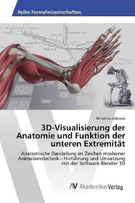 Diese Ausarbeitung greift das Thema der 3D-Visualisierung an dem konkreten Beispiel der Animation menschlicher Anatomie auf. Im Fokus liegt die Beteiligung der einzelnen Fuß- und Beinmuskeln an bestimmten Bewegungsabläufen. 3D-Animation dient hierbei als Werkzeug, Schulungsmaterial in einer angemessen aussagekräftigen anatomischen Genauigkeit zu erzeugen. Gegenstand der Betrachtung ist die Ausführung der praktischen Arbeit mit dem 3D-Programm Blender, das frei nutzbar ist und quelloffen vorliegt. Beleuchtet werden hierbei Technik und Herangehensweise bei der Umsetzung der Arbeitsschritte des Projekts, sowie softwarespezifische Besonderheiten im Umgang mit Blender. Ein historischer Exkurs zur Bedeutung anatomischer Darstellung in der Neuzeit führt thematisch in das Thema ein: Neue Technologien knüpfen an die künstlerische Tradition an, um komplexe Strukturen und Abläufe zu veranschaulichen.