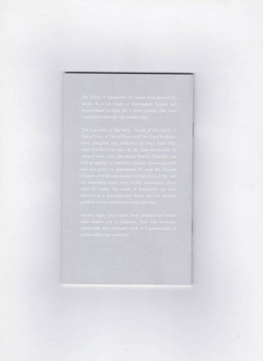 The power of Sabahattin Ali comes from beyond his words. It is his sense of observation, insight and commitment to fight for a fairer society that have carried his voice into the modern day. The four tales in this book - Death of the Giants, A Tale of Love, A Tale of Sheep and The Glass Pavilion - were compiled and published in Sırça Köşk [The Glass Pavilion] in 1947. At the time Sabahattin Ali penned these tales, the young Turkish Republic was still struggling to establish a proper democracy with one sole party in parliament. In 1948 the Turkish Council of Ministers decided to ban Sırça Köşk, and all remaining copies were swiftly confiscated. Even after his death, the words of Sabahattin Ali were deemed as a governmental threat and for decades publishers were reluctant to print his work. Almost eighty years later, these political and social tales remain just as poignant. Does this showcase Sabahattin Ali’s visionary spirit or a general lack of vision within our societies?