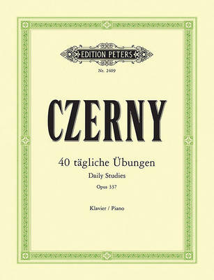 Czerny's 40 Daily Exercises (Op. 337) is a collection of studies for piano to help improve student's technique and performance abilities. Czerny's own instructions above the studies read: 'Each repetition should be played 20 times without interruption, ' or other numbers of repetitions. 'Daily Exercises' does not mean that all 40 studies are to be played every day, but the composer recommends that about one hour be devoted to studying part of them every day, requiring about three or four days to get through all 40 of them.