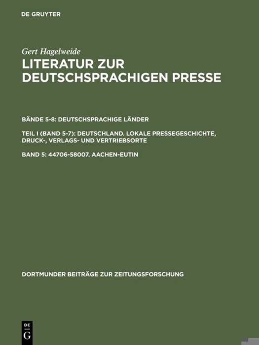 Deutschland. Lokale Pressegeschichte, Druckorte, Verlagsorte und Vertriebsorte. Aachen-Eutin