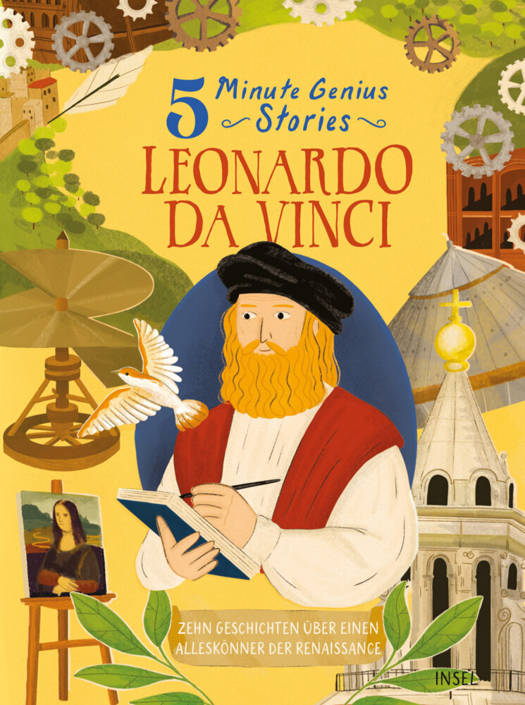 Die Mona Lisa von Leonardo da Vinci ist eines der berühmtesten Gemälde der Kunstgeschichte. Doch neben dem Malen hatte Leonardo noch viele weitere Talente. Zum Beispiel erfand er einen Taucheranzug, ein Gerät, mit dem man Wegstrecken messen kann, und er designte den ersten Helikopter. Seine Neugierde erstreckte sich über viele verschiedene Bereiche und er hörte nie auf Neues zu lernen. In diesen zehn 5-Minuten-Geschichten könnt ihr Leonardo da Vinci ganz genau kennenlernen und - wer weiß? - vielleicht kommen euch beim Lesen ja Ideen zu eigenen Erfindungen.