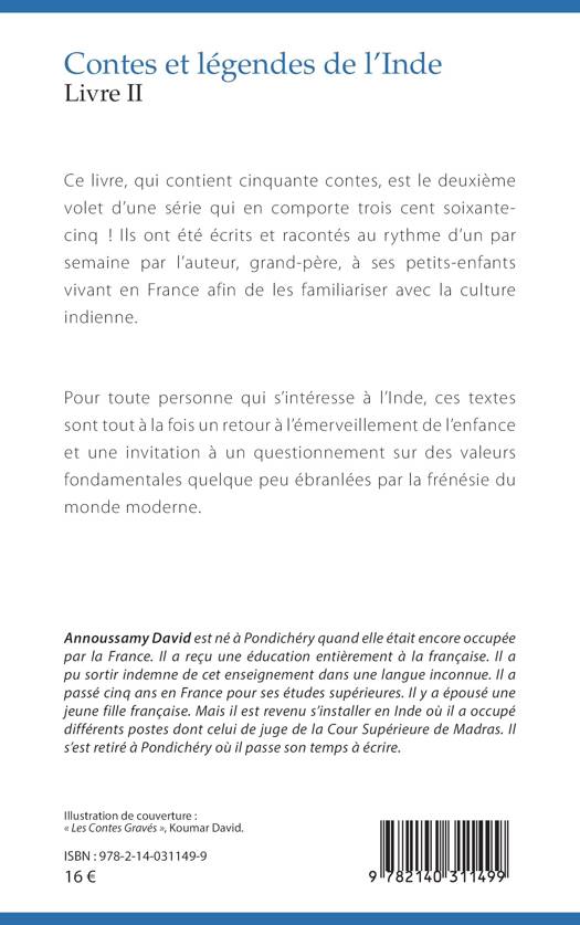 Ce livre, qui contient cinquante contes, est le deuxième volet d'une série qui en comporte trois cent soixante-cinq ! Ils ont été écrits et racontés au rythme d'un par semaine par l'auteur, grand-père, à ses petits-enfants vivant en France afin de les familiariser avec la culture indienne. Pour toute personne qui s'intéresse à l'Inde, ces textes sont tout à la fois un retour à l'émerveillement de l'enfance et une invitation à un questionnement sur des valeurs fondamentales quelque peu ébranlées par la frénésie du monde moderne.