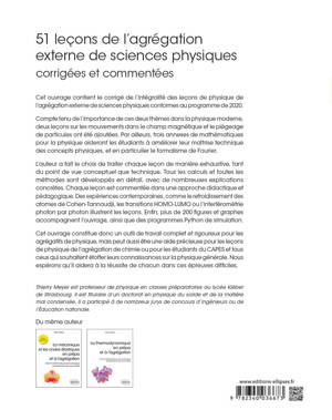 Cet ouvrage constitue donc un outil de travail complet et rigoureux pour les agrégatifs de physique mais peut aussi être une aide précieuse pour les leçons de physique de l’agrégation de chimie ou pour les étudiants du CAPES et tous ceux qui souhaitent étoffer leurs connaissances sur la physique générale.
