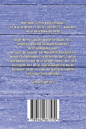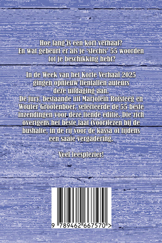 In de Week van het Korte Verhaal 2025 gingen opnieuw tientallen auteurs deze uitdaging aan. De jury, bestaande uit Marjolein Rotsteeg en Wouter Grootenboer, selecteerde de 55 beste inzendingen voor deze tiende editie. Die zich overigens het beste laat (voor)lezen bij de bushalte, in de rij voor de kassa of tijdens een saaie vergadering.