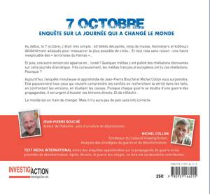 Au début, le 7 octobre, c’était très clair : 40 bébés décapités, viols de masse, festivaliers et kibboutz délibérément attaqués pour massacrer le plus possible de civils... Et tout cela sans raison : une haine inexplicable des « terroristes du Hamas »... Et puis, une histoire très différente est apparue en... Israël ! De nombreux médias y ont publié des révélations étonnantes sur cette journée dramatique. Très curieusement, nos médias ont tu ces révélations. Pourquoi ? Aujourd’hui, l’enquête minutieuse et approfondie de Jean-Pierre Bouché et Michel Collon vous surprendra. Elle passionnera tous ceux qui veulent comprendre les conflits en recherchant la vérité dans les faits, en confrontant les versions, en étudiant les causes. Puisque chaque guerre se double d’une guerre des propagandes, il est urgent d’écouter les témoins directs. Et de réfléchir.Il n’y aura pas de paix sans une info correcte.