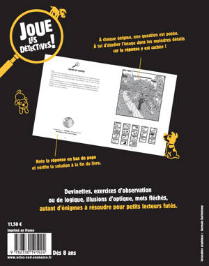 Devinettes, exercices d'observation ou de logique, illusions d'optique, mots fléchés, il faut ouvrir l'oeil et le bon pour trouver les réponses cachées dans le dessin. Autant d'énigmes à résoudre pour petits lecteurs futés. Le livre-jeu idéal pour les vacances. Par l'auteur du best-seller "Les Enquêtes de la main noire" : 42 000 exemplaires ont été vendus de la première édition, parue en 2008 (et indisponible depuis 2010).