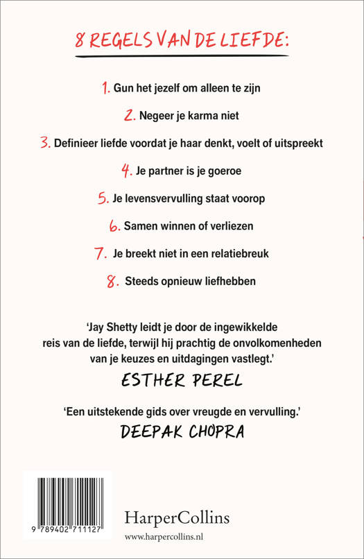 Door het naleven van de acht liefdesregels kan iedereen meer van zichzelf en de wereld om zich heen houden. Met warmte en helderheid begeleidt Jay Shetty je in dit boek naar een liefdevoller leven.