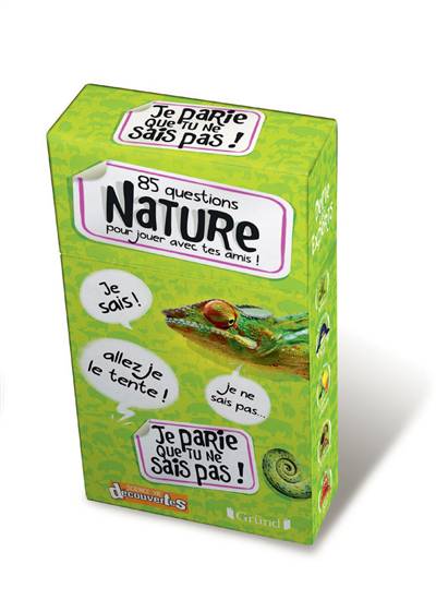 Voici 85 cartes avec des questions sur le thème de la nature, réparties en 5 catégories : " Animaux ", " Crado ", " Terre ", " Corps humain " et " Plantes et compagnie "