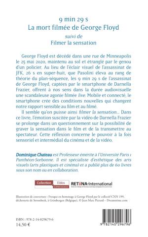 George Floyd est décédé dans une rue de Minneapolis le 25 mai 2020, maintenu au sol et étranglé par le genou d’un policier. Au lieu de l’éclair visuel de l’assassinat de JFK, 26 s en super-huit, que Pasolini éleva au rang de théorie du plan-séquence, les 9 min 29 s de l’assassinat de George Floyd, captées par le smartphone de Darnella Frazier, offrent à nos sens dans la durée audiovisuelle une scandaleuse agonie filmée live. Mobile et connecté, le smartphone crée des conditions nouvelles qui changent notre rapport sensible au film et au filmé. Il semble qu’on puisse ainsi filmer la sensation. Dans cet ouvrage, l’émotion suscitée par la vidéo de Darnella Frazier se prolonge dans un questionnement sur la possibilité de graver la sensation dans le film et de la transmettre au spectateur. Cette réflexion concerne le pouvoir à la fois sensoriel et intermédial du cinéma et de la vidéo.