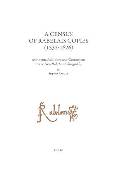 This Census of Rabelais Copies reflects the digital revolution in library cataloguing, incorporating a complete rechecking for early Rabelais copies, notably in the Worldcat database. Every copy recorded has been further verified in the catalogues of the individual libraries concerned. Alongside numerous corrections and additions to the 1987 publication, based on excellent bibliographical and more general scholarship, this Census increases the total number of known copies of Rabelais, dated between 1532 and 1626, and in public hands, from about 750 to nearly 1100, of which well over 100 are available for consultation on-line.