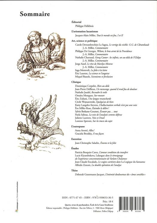 Un numéro autour du texte Lacan pour Vincennes ! et du commentaire qu'en a donné J.-A. Miller dans son cours L'orientation lacanienne. Tout le monde est fou, donné en 2007-2008. Un entretien avec J.-C. Saladin, spécialiste d'Erasme et de la Renaissance, des contributions issues du Congrès de l'AMP 2024 ainsi que des extraits d'une thèse sur la folie romantique complètent la livraison.